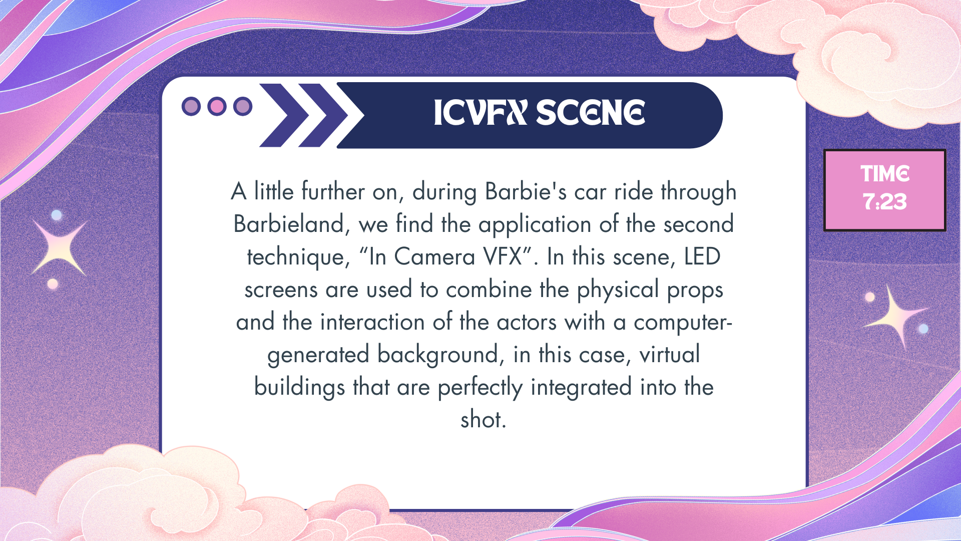 This analysis, conducted for the Introduction to Virtual Production course at RTVE Instituto, explores how Barbie (2023) blends Simulcam and ICVFX to create a visually unique world, leveraging the strengths of each technique to enhance immersion and production efficiency.